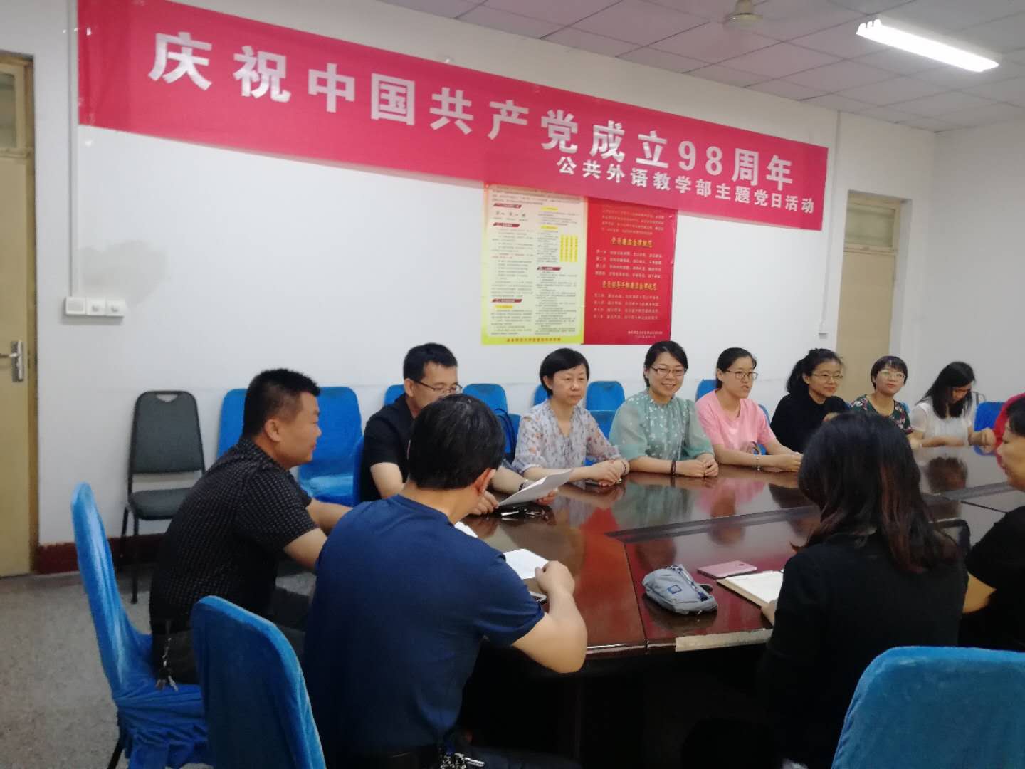 6月26日下午,mk(中国)曲阜校区党支部召开主题党日活动,庆祝中国共产党成立98周年,党日活动由支部书记王广成主持,全体党员参加。会上,王广成带领全体与会党员重温了入党誓词,全体党员认真学习领会了习近平总书记“不忘初心、牢记使命”的理论内涵和实践要求,进一步明确了“守初心、担使命,找差距、抓落实”的总体要求。全体党员面对国旗、党旗,庄严宣誓,重温入党誓词,永葆入党初心。同时,支部副书记刘成干结合实际,围绕“不忘初心、牢记使命”主题带头讲授了党课,要求全体党员、全体教师要坚决维护核心,对党忠诚,聚焦贯彻落实以习近平同志为核心的党中央的各项决策部署和精神,为促进学校大学英语改革发展而担当有为。其次,围绕本次民主生活会,党员同志就发扬民主、教学促进等进行了热烈的讨论。