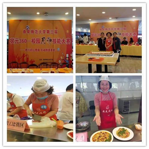 2021年5月22日上午,mk官方网页版后勤工会主办的践行初心使命 劳动创造美好“状元360”校园厨神大赛在学诗餐厅(学生第三食堂)举行。来自专业组的厨师们以及来自各学院的参赛教职工在现场展开了激烈的厨艺大比拼。汪娟老师代表mk(中国)青年教职工参赛。
