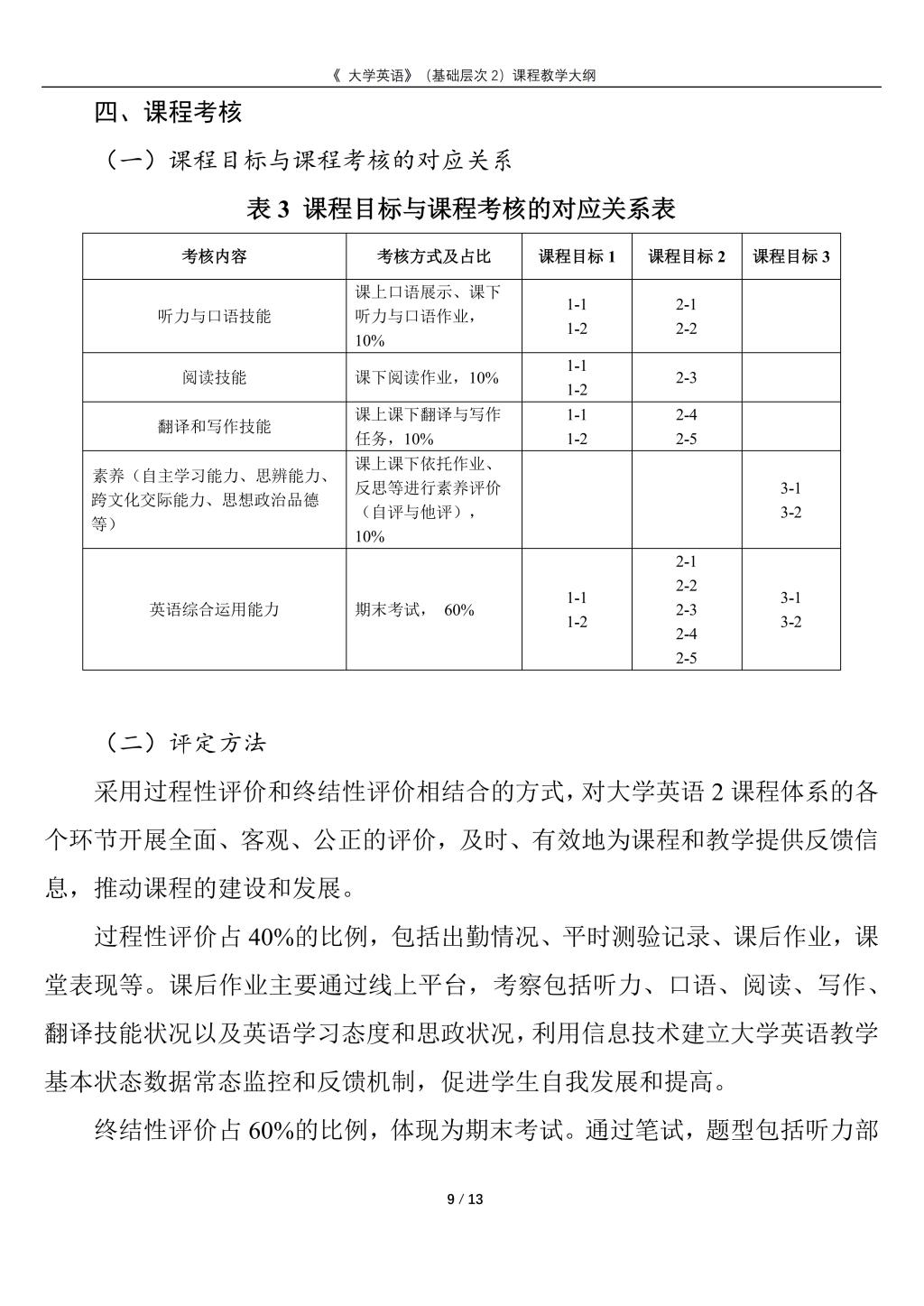大学英语(普通类基础层次2)课程教学大纲(2022版)
