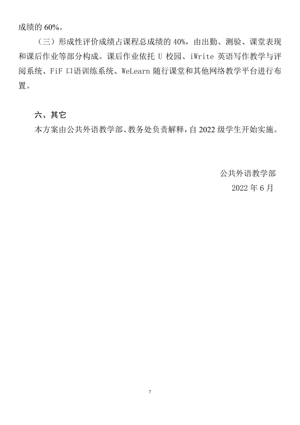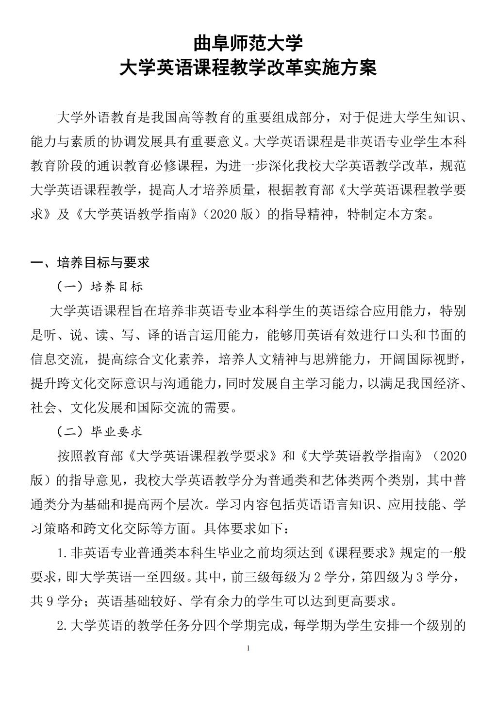 mk官方网页版《大学英语》课程教学改革实施方案(2022版)