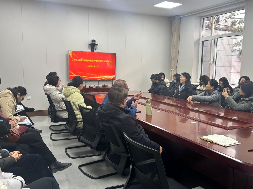 在会议第二阶段,王福祥就学校关于开展师德师风建设和校园安全工作会议精神作了全面传达,他重点对mk(中国)新学期思想政治理论学习、师德师风建设、意识形态管控等方面任务作了深入分析和总体部署,他强调在新学期要持续加强全体教师意识形态教育,树牢意识形态红线底线意识,深入开展师德师风建设主题教育活动,切实提升全体教师“为党育人,为国育才”使命感与责任感,增强全体教师为国弘文的荣誉感,形成甘于奉献、风清气正、乐教爱生的良好师德师风新风尚;他要求全体任课教师在日常教学工作中要时刻拉直绷紧意识形态红线,立师表,铸师魂,强化课堂管理,规范师生交往,弘扬主旋律,传递正能量。此外,结合新学期教学科研等各项重点工作,他要求全体教师要高度重视课堂教学工作,精益求精,求真务实,切实提升我校大学英语课程教学质量,扎扎实实为我校人才培养工作做好基础性支撑工作;在此基础上,切实加大科研攻关力度,认真组织好各类重点课题申报工作,积极参加各类学术会议,培育更多高层次成果,实现高质量发展。